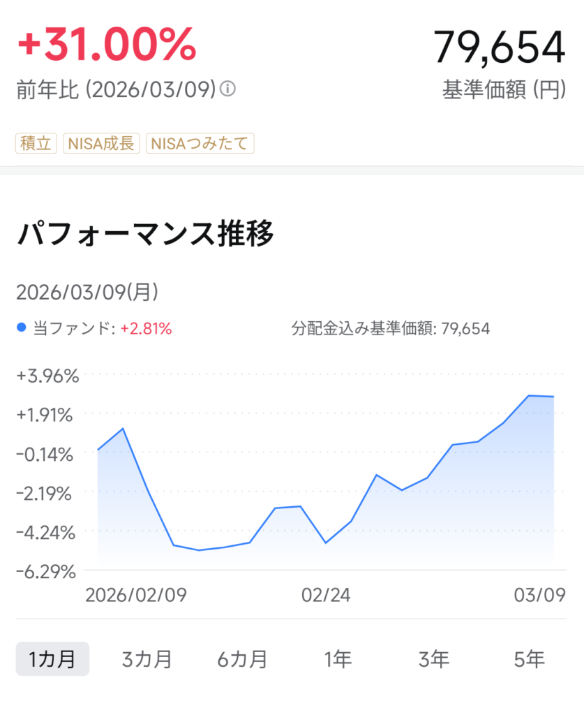 | 積立FANG+ | 9,869円 | 9,316円 | +553円 |
