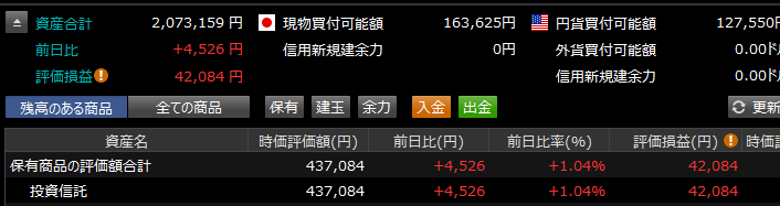 これは評価額の下落ではなく、積立・買付による現金(預り金)減少が主な要因です。